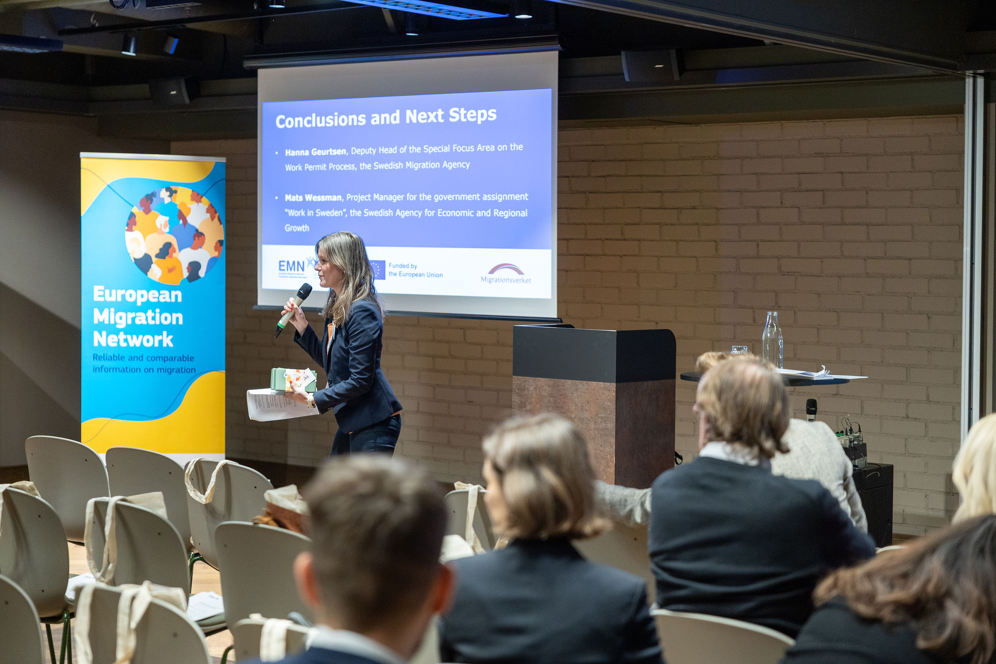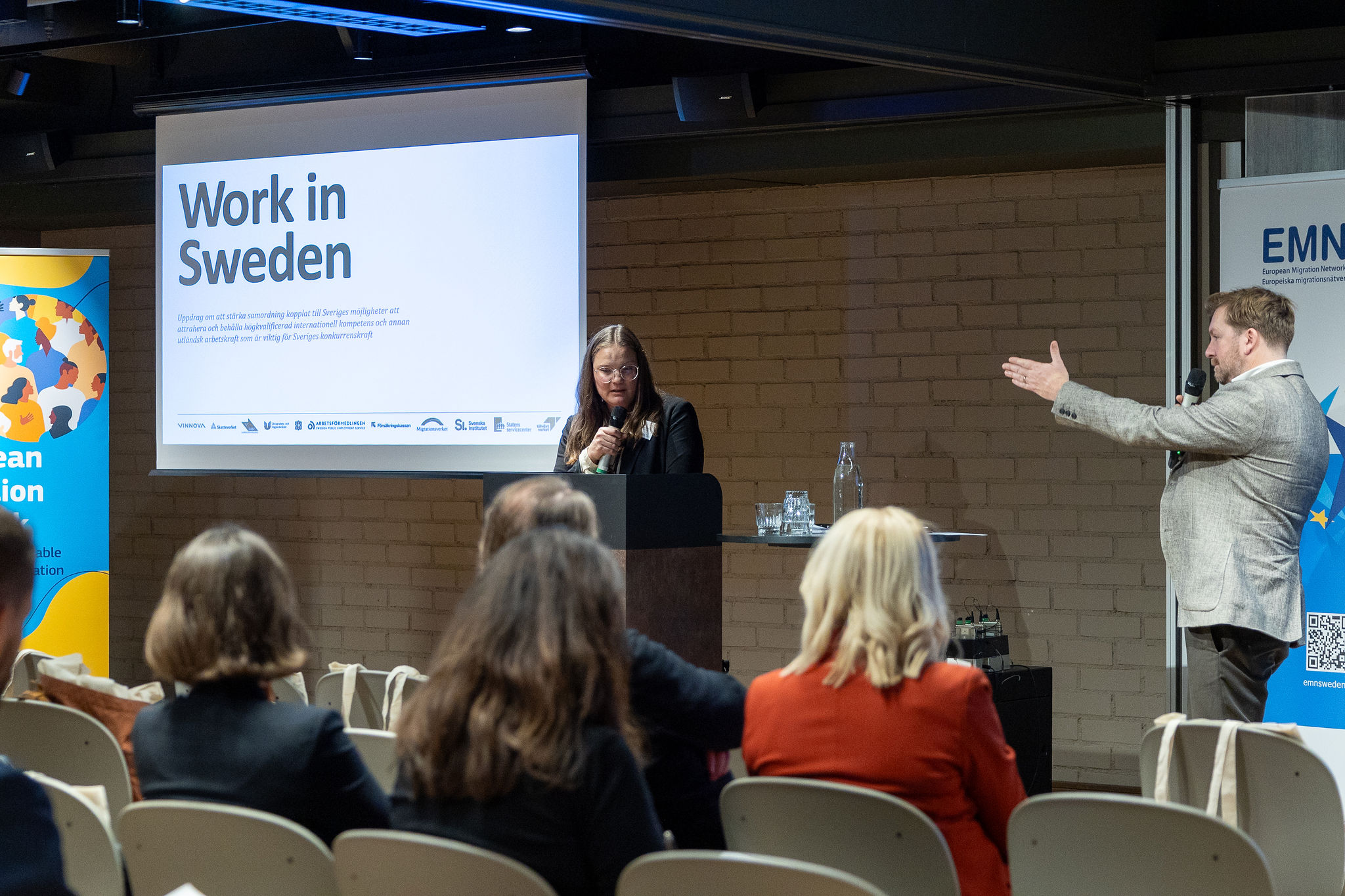 Conclusions and summary of the day with Hanna Geurtsen, Deputy Head of the Special Focus Area on the Work Permit Process, the Swedish Migration Agency and Mats Wessman, Project Manager for the government assignment “Work in Sweden”, the Swedish Agency for Economic and Regional Growth